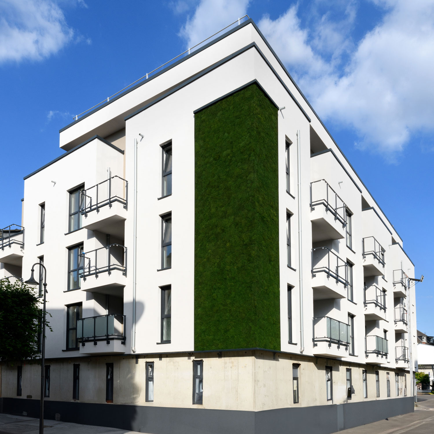 Mit MOOSMOOS GREENOVATION präsentieren wir Ihnen die weltweit erste und einzige wartungsfreie Moos Fassadenbegrünung mit 6 Jahren Qualitätsgarantie. Unsere innovative Lösung erzeugt eine dauerhaft grüne Oberfläche, die ästhetisch ansprechend, nachhaltig und umweltfreundlich ist. Sie trägt dazu bei Wärmeinseln in Städten zu reduzieren, den Regenwasserrückhalt zu unterstützen, die Luftqualität zu verbessern und Abgase zu reduzieren.