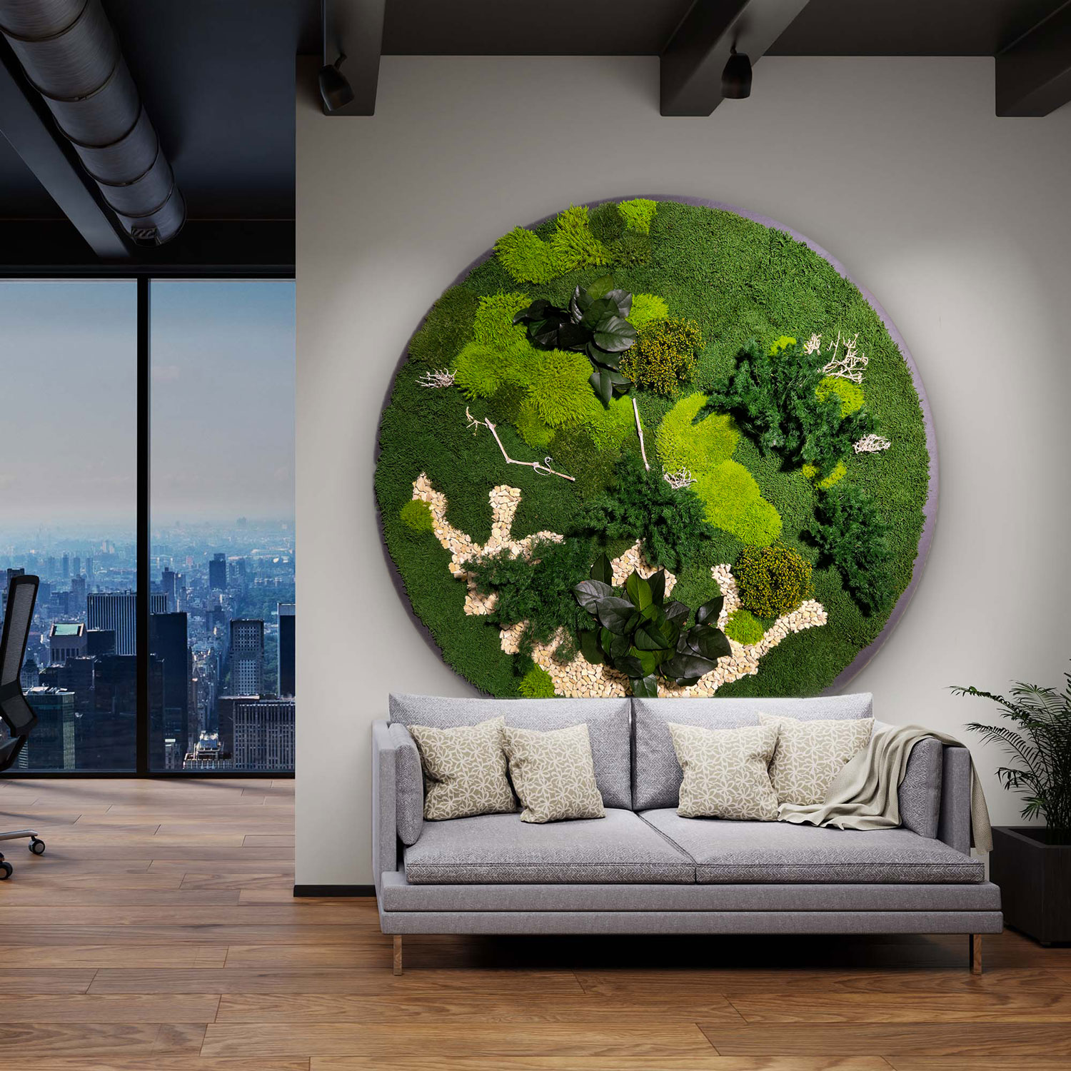 Stress minimieren, Wohlbefinden steigern und zurück zur inneren Balance finden. Mit unseren gigantischen Moosbild erzeugen Sie in Ihrem Zuhause einen einzigartigen Naturcharakter und profitieren so positiv von seiner natürlichen Ausstrahlung. Egal ob im heimischen Wohnzimmer, als Designelement in Ihrer Praxis oder als stylisches Highlight in Ihrem Büro: Das zeitlose Design passt zu jedem Einrichtungsstil. Unser Moosbild aus Pflanzenmoos verhilft außerdem zu einem angenehmen Raumklima, verbessert die Raumakustik und bringt die Ruhe der Natur in Ihre Vier Wände.