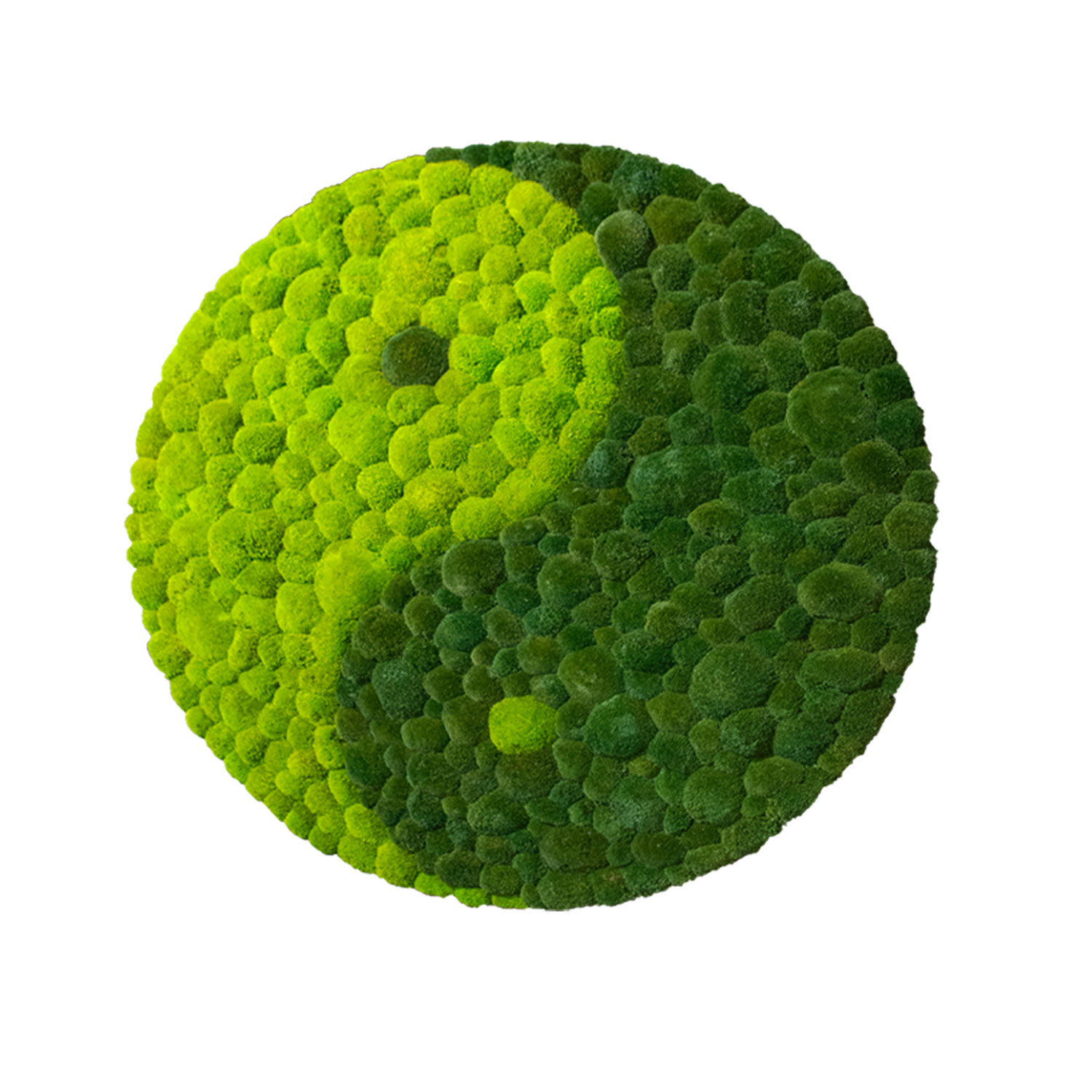 Jedes Stück ist ein Unikat, da es in aufwendiger Handarbeit gefertigt wird. Das Ballenmoos besticht durch seine lebendige Struktur und die intensive Farbgebung, die das Symbol des Yin und Yang eindrucksvoll zur Geltung bringt. Das tiefe Grün des Mooses verleiht dem Design eine beruhigende Ausstrahlung und setzt stilvolle Akzente in jedem Raum.